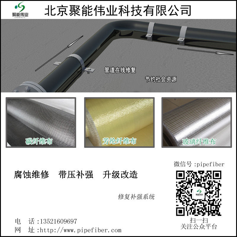 北京聚能偉業(yè)科技有限公司致力于高性能碳纖維、芳綸纖維復(fù)合材料的開(kāi)發(fā)生產(chǎn)和應(yīng)用,公司生產(chǎn)的管道補(bǔ)強(qiáng)修復(fù)用的雙向碳纖維布和芳綸纖維布為油氣儲(chǔ)運(yùn)、煉油、化工、發(fā)電、鋼鐵冶煉等領(lǐng)域的企業(yè),提供全套的工程解決方案和服務(wù)。聚能偉業(yè)公司提供的服務(wù)內(nèi)容有:壓力管道碳纖維復(fù)合材料補(bǔ)強(qiáng)、壓力容器碳纖維復(fù)合材料補(bǔ)強(qiáng)、鋼結(jié)構(gòu)碳纖維復(fù)合材料補(bǔ)強(qiáng)等。 碳纖維芳綸纖維復(fù)合材料修復(fù)技術(shù)包括